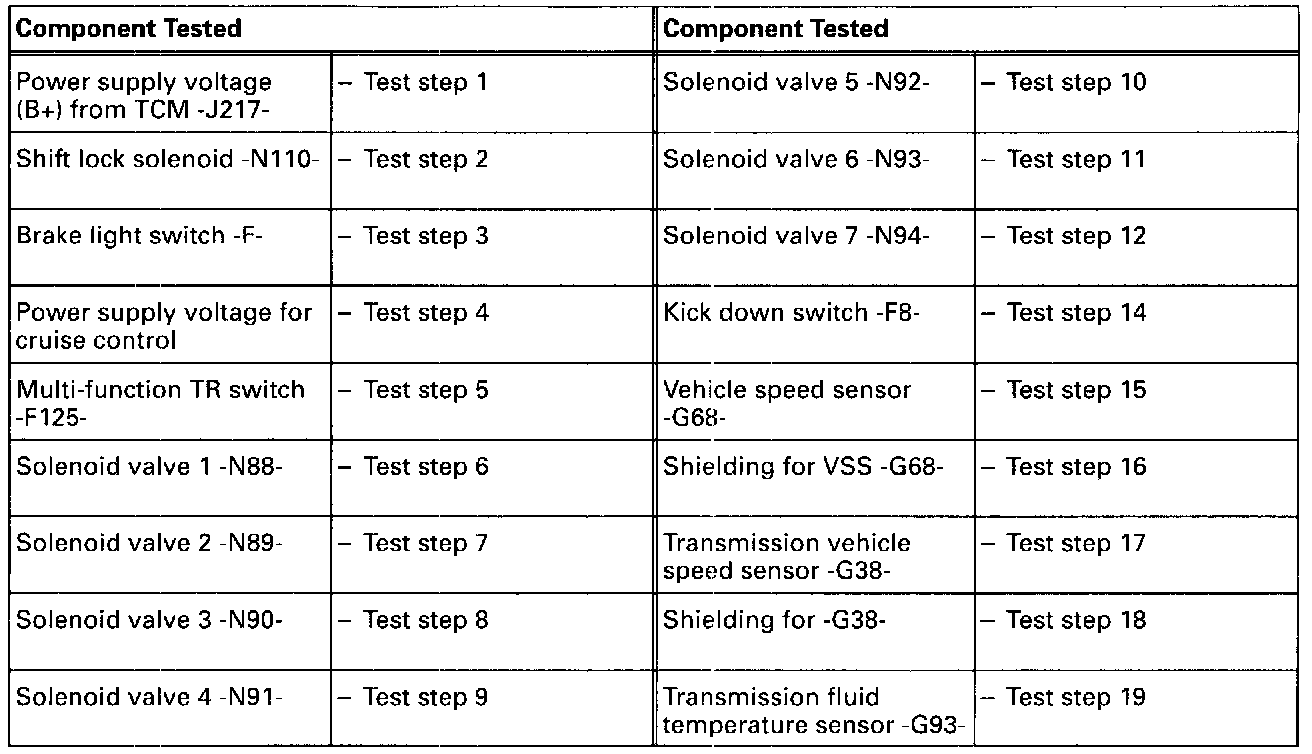 List Of Components And Test Steps (TCM With 68-pin Connector)