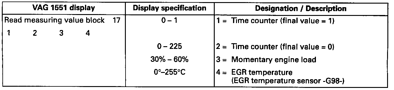 ^ Since EGR is automatically shut OFF during function 04 "Basic Setting', display group 017 can be evaluated only in "Read Measuring Value Block" function 08.
