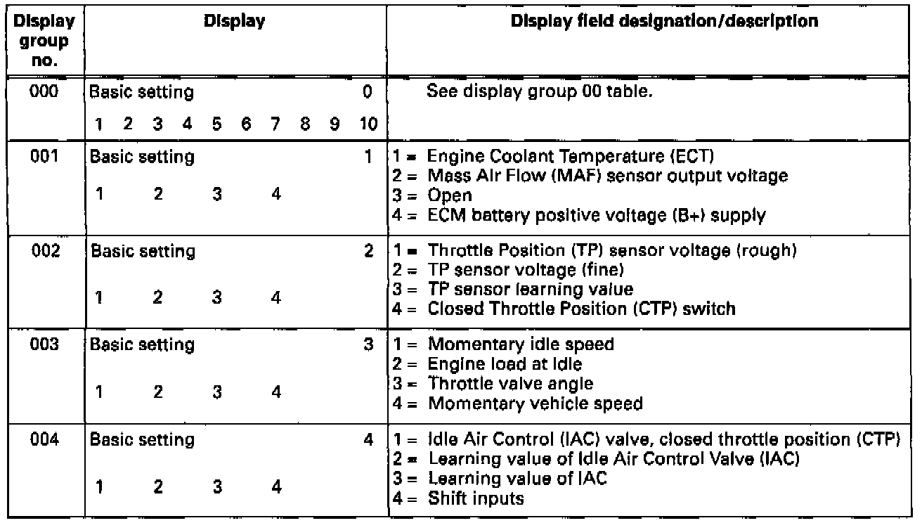 Overview Of Display Groups 000 - 004: