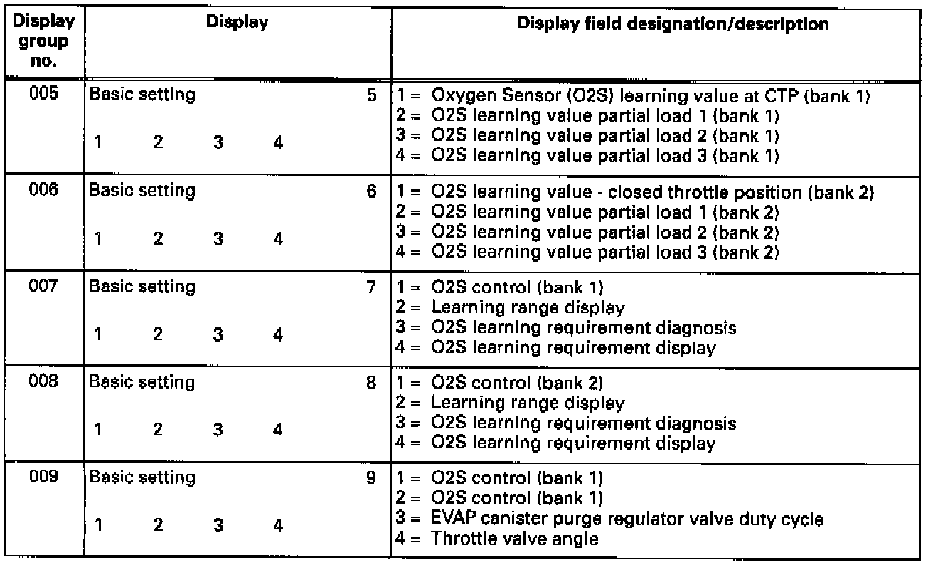 Overview Of Display Groups 005 - 009: