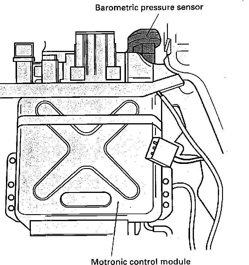 The Barometric Pressure Sensor is located at the top of the Motronic control module.