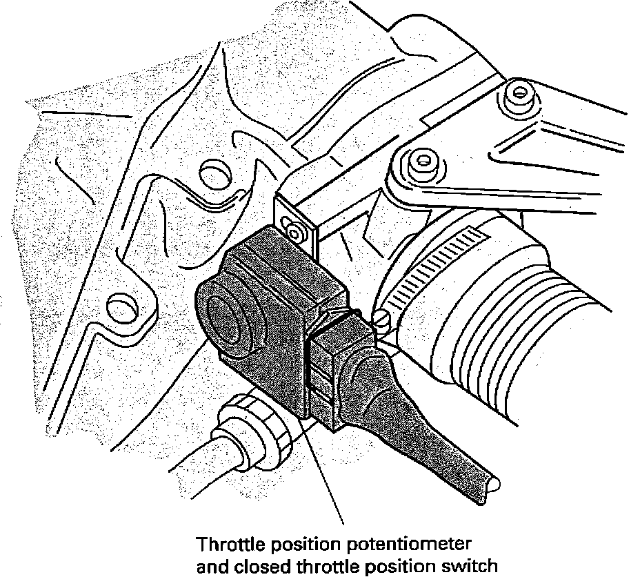 The Closed Throttle Position Switch and throttle position potentiometer are in one housing. The housing is located on the side of the throttle body.
