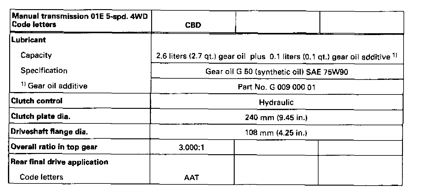 Code Letters, Engine/Transmission Applications, Ratios, Capacities I: