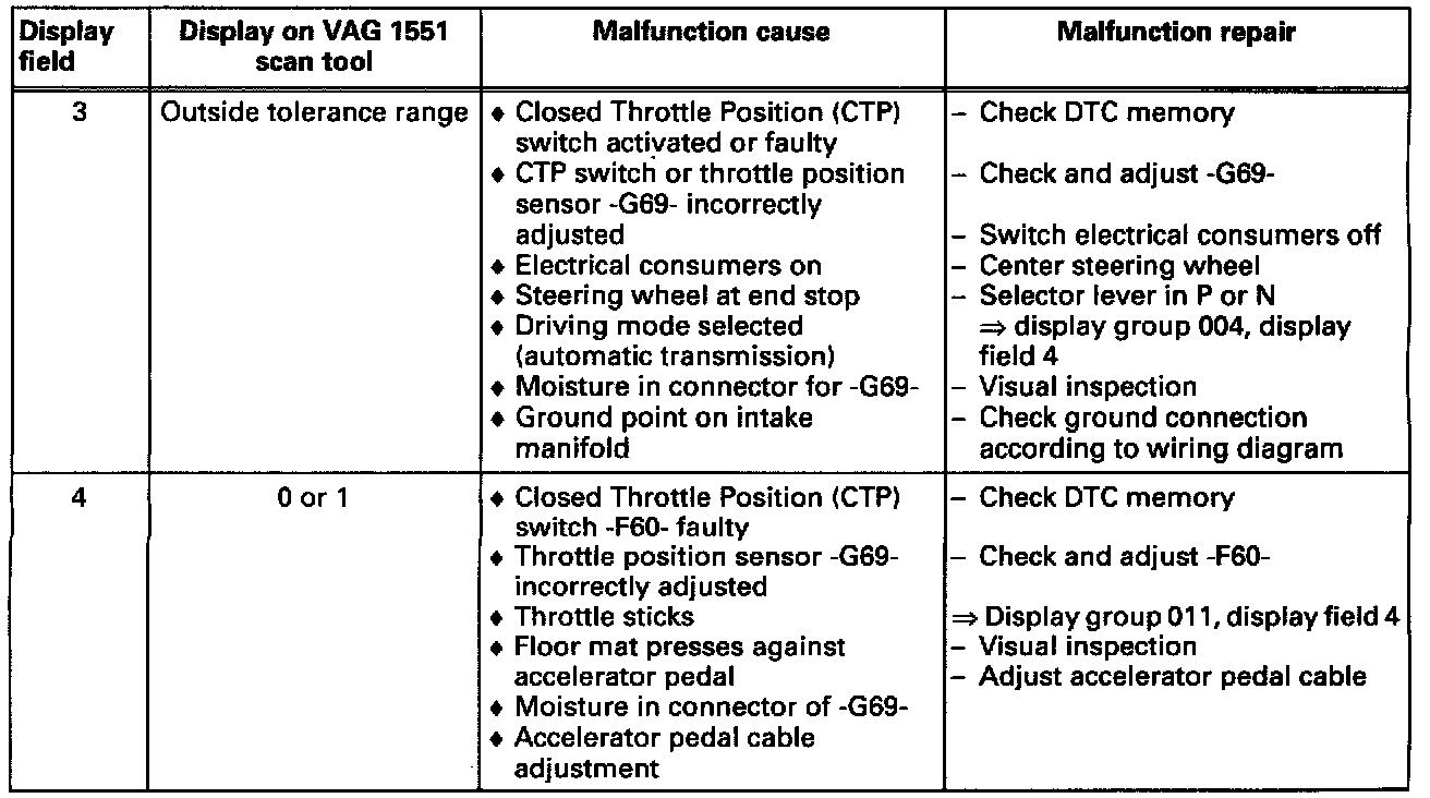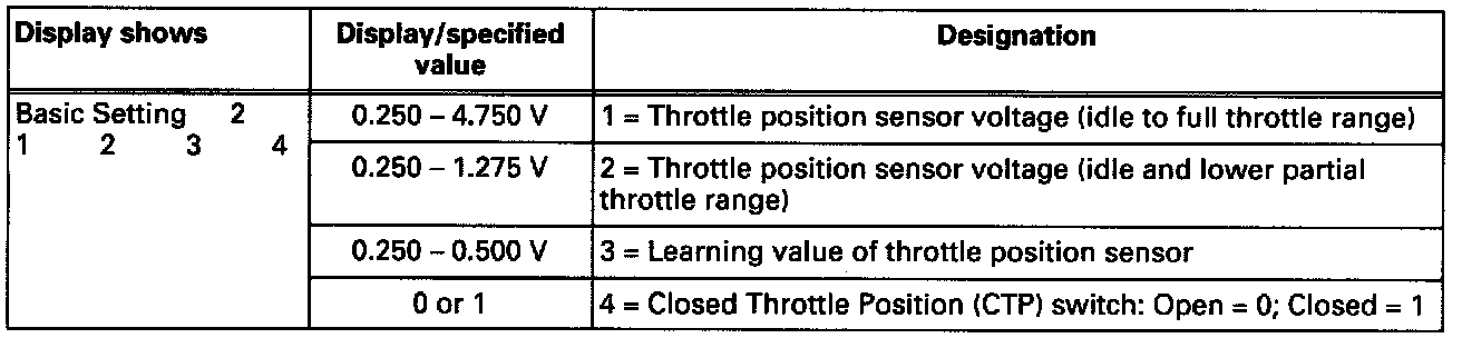 - The mechanical Closed Throttle Position (CTP) switch must be closed for the testing on the throttle position sensor learning values display field 4.