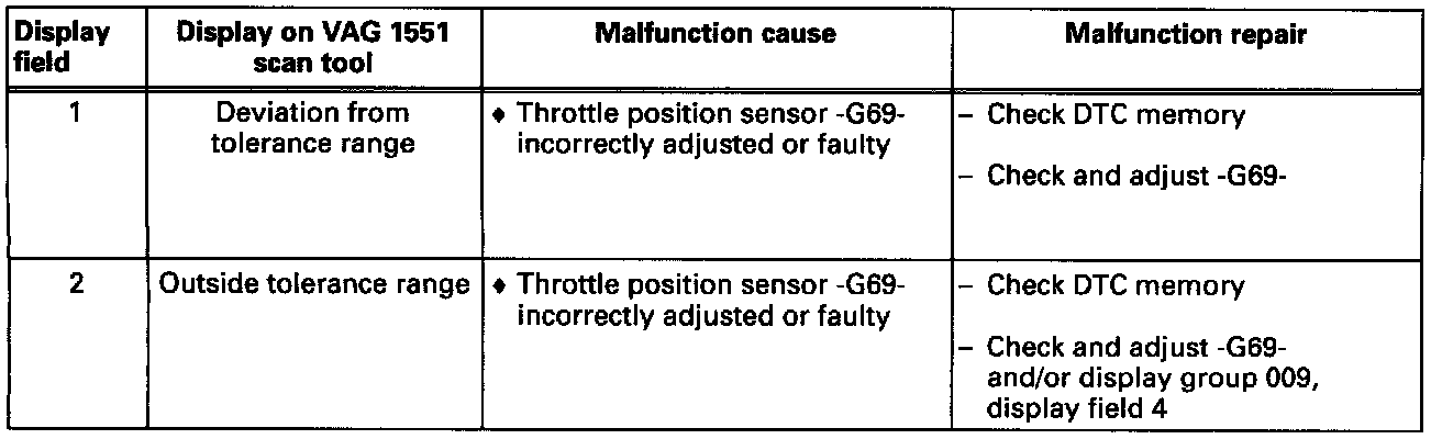 - If the displays in display fields 2 and 3 match at idle, the learning process is OK. If no learning process takes place, the last value learned will be displayed continuously.
