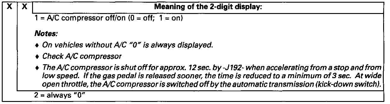 - If the A/C compressor is off display field 3; display field 4 can be used to recognize whether the compressor was switched off by the ECM.