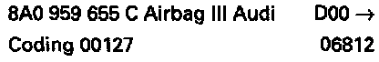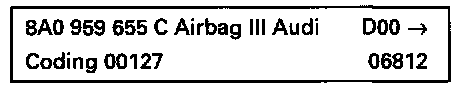 ^ When the On Board Diagnostic (OBD) program is initiated and the VAG 1551 scan tool displays incorrect coding for the current airbag system version, or the airbag control module is replaced, carry out coding of the airbag control module as follows: