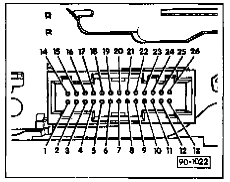 25 - Positive (B+) terminal for seatbelt warning light (bulb -14-)