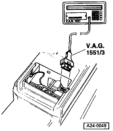 - Connect VAGl55l scan tool with VAG1551/3 adapter to 16-pin Data Link Connector (DLC) in console.