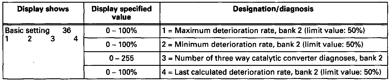 - The number of three way catalytic converter diagnoses (display field 3) is incremented each time a diagnosis is carried out, no matter whether the diagnosis is considered OK or not OK.