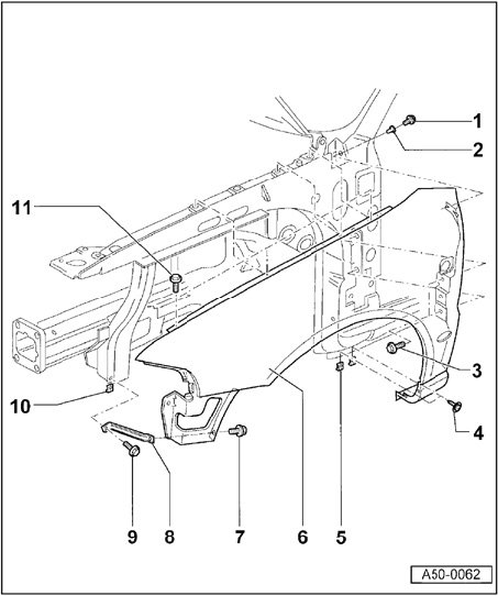 Front Fender (> VIN 8D XA 200 000), Assembly Overview