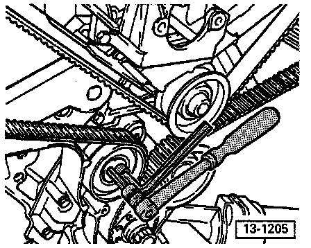 - Loosen and remove toothed belt.