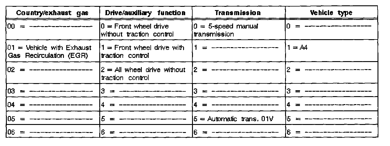 These are the introductory version and the successor versions for the USA Audi 100 with On Board Diagnostic (OBD I). The engine control modules are downwardly compatible.