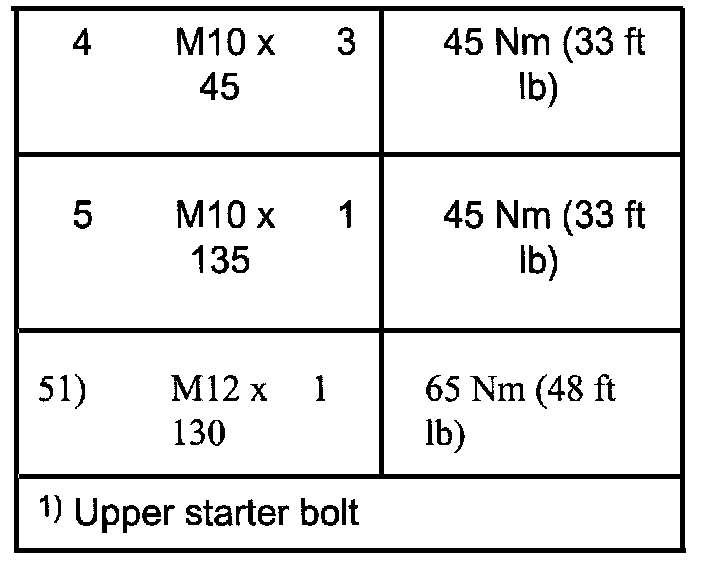Pivot Rod to Transmission 40 Nm (30 ft. lb.)