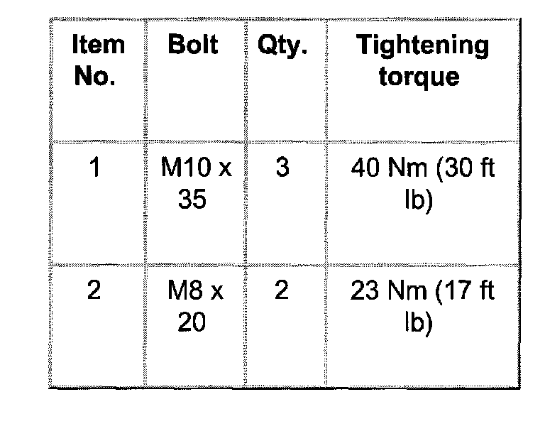 - Socket-head Bolt (1) 20 Nm (15 ft. lb.)