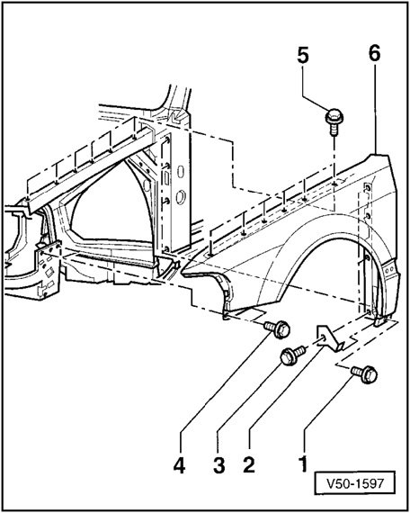 - Remove bolts - 1 -, - 4 - and - 5 -.