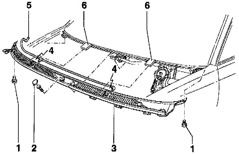 - Remove screws -1- and -2- and remove windshield trim from brackets -6-.