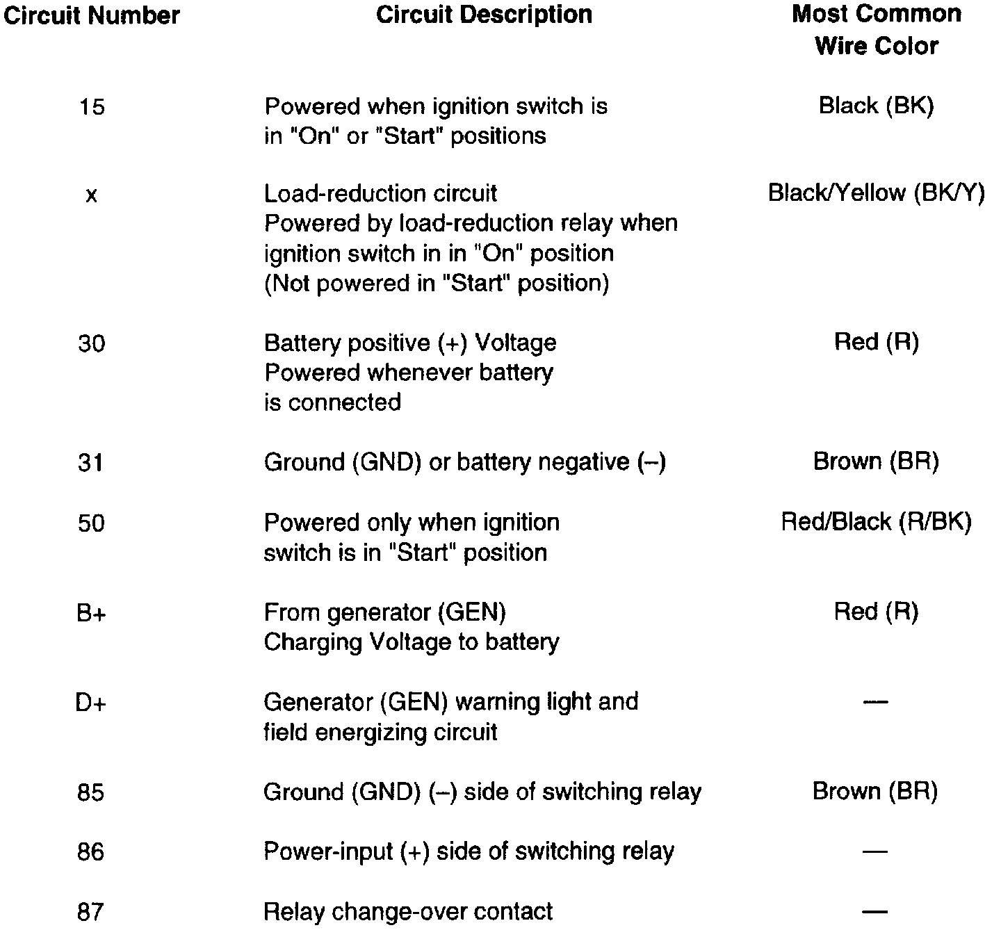 Standard Circuit/Terminal Designations: