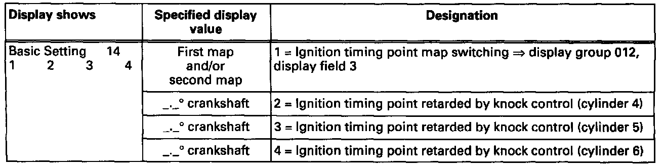 - Knock control is active starting at an engine load greater than 40%. If the engine load exceeds 40%, the current ignition timing point retarding value is displayed; if the engine load drops below 40%, the last values used are displayed constantly.