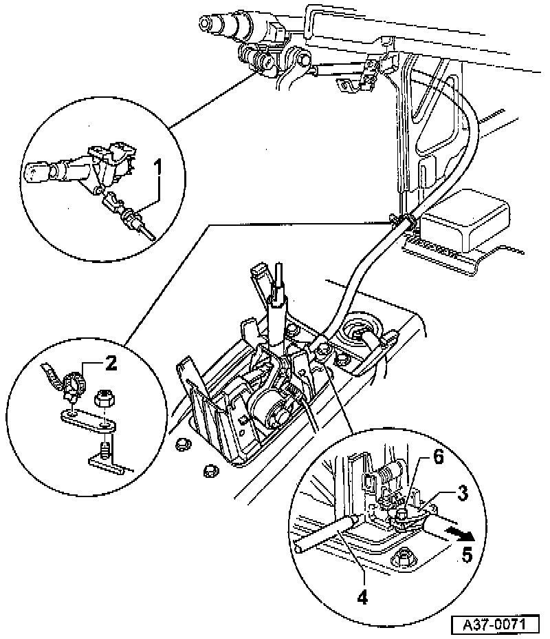 - Pull lock cable in direction of arrow -5- and tighten bolt -6- to: 8 Nm (70 inch lbs).