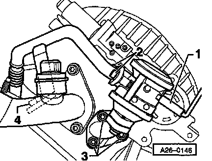 - Remove bolts -3- for combination valve from cylinder head and if necessary, remove bracket -4- from cylinder head.