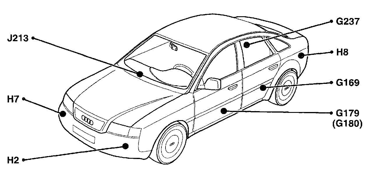 Component Location View: J213, H2, H7, H8, G237, G169, G179 (G180):