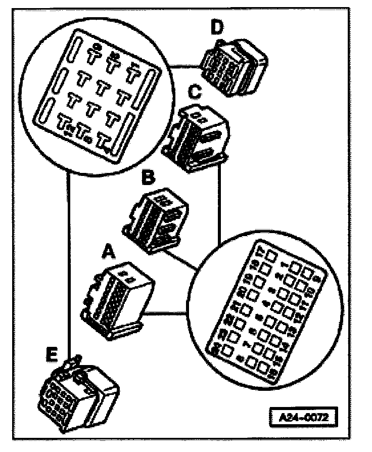 - Connect VAG1598/19 test box to Engine Control Module (ECM) harness connector. Refer "Scan Tool Testing/Scan Tool Connecting and Initial Checks/VAG1598/19 Test Box, Connecting" Testing and Inspection