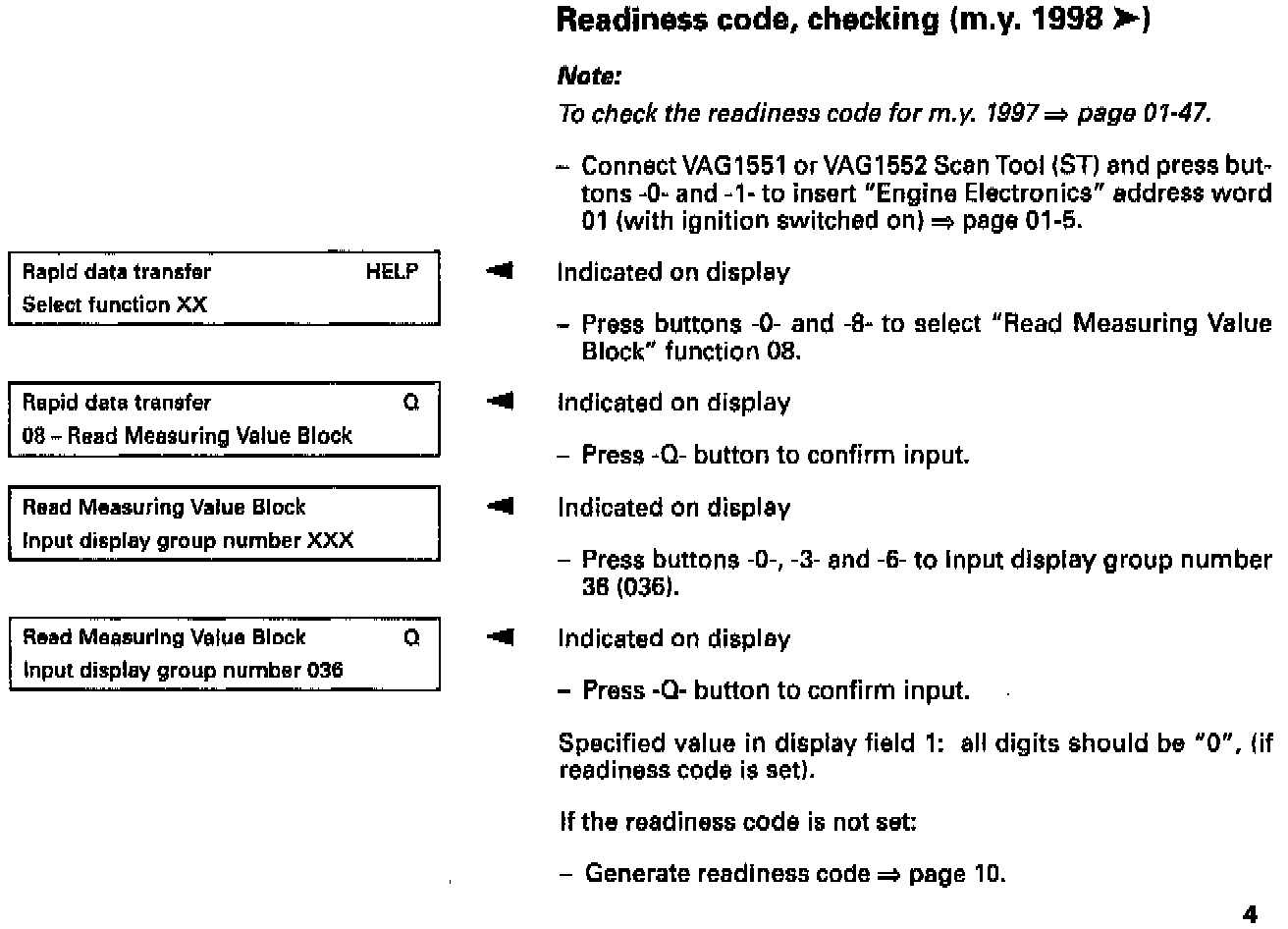 Diagnostic Trouble Code (DTC) Table, Additions Readiness Code, Checking and Generating