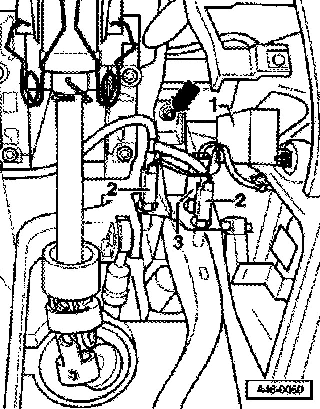- Remove brake light switch -3- and CCS vent valves -2-.