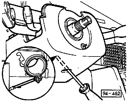 - Disconnect airbag spiral spring harness connector on right side behind steering column trim (gently depress lug in center part of connector with screwdriver).