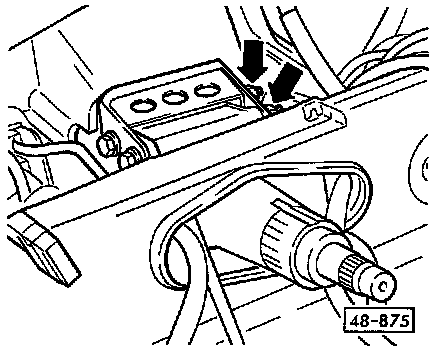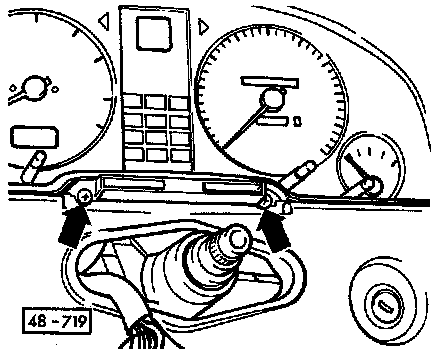 - Remove screws (arrows in illustration) and remove upper section of steering column trim.
