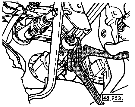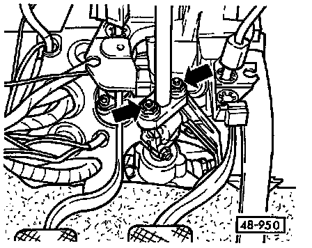 - Back off nut (b in illustration) and unscrew spindle (a in illustration) from steering column.