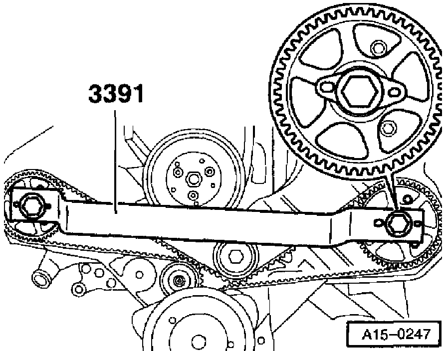 There are no alignment marks on the camshafts, you must use the camshaft holder tool 3391 in conjunction with the crankshaft holder tool 3242 to properly align the camshaft and crankshaft