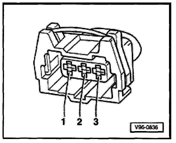 - Connect multimeter US1119 (Fluke 83 or equivalent) between harness connector terminals 2 (Ground) and 3 (B+), using adapter cables from VW1594 connector test kit.