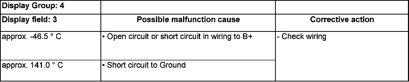 - If malfunction within certain. temperature ranges while the engine is running, and the temperature values do not increase without interruption, the temperature signal is intermittently interrupted and the sensor must be replaced.
