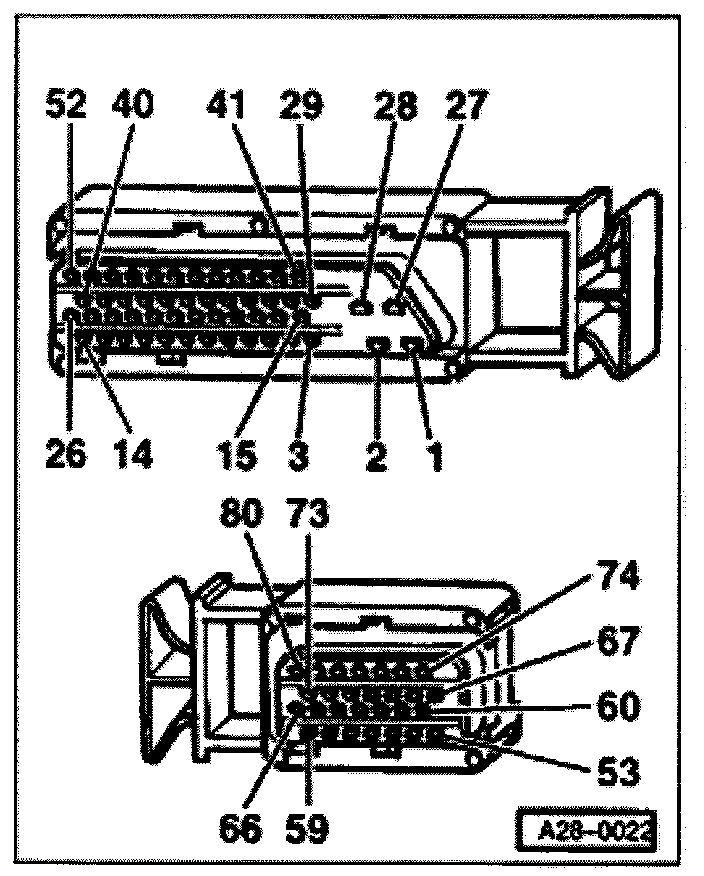 - Connect VAG1598/22 test box to ECM harness connector. Refer to "Scan Tool Testing/Scan Tool Connecting and Initial Checks/Connecting VAG 1598/22 Test Box" Testing and Inspection