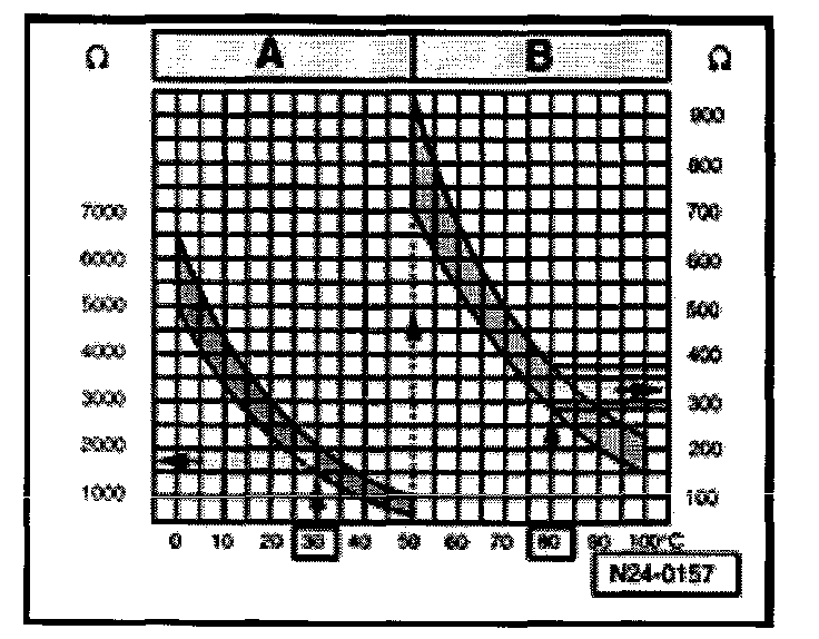 - Check measured resistance value for appropriate temperature range using graph below (N24-0157).