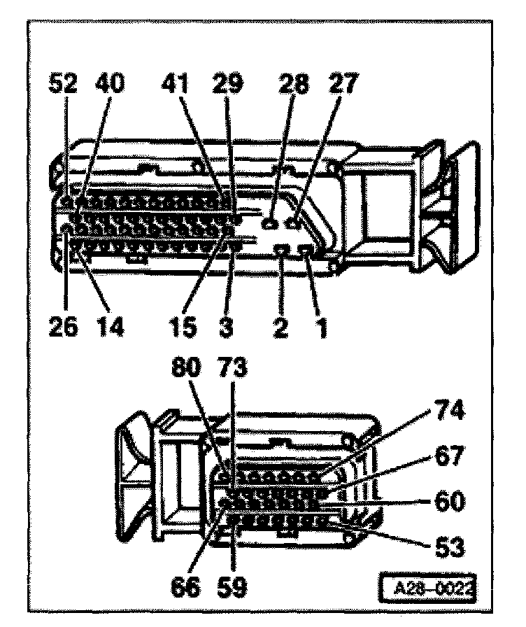 - Connect VAG1598/22 test box to ECM harness connector. Refer to "Scan Tool Testing/Scan Tool Connecting and Initial Checks/Connecting VAG 1598/22 Test Box" Testing and Inspection