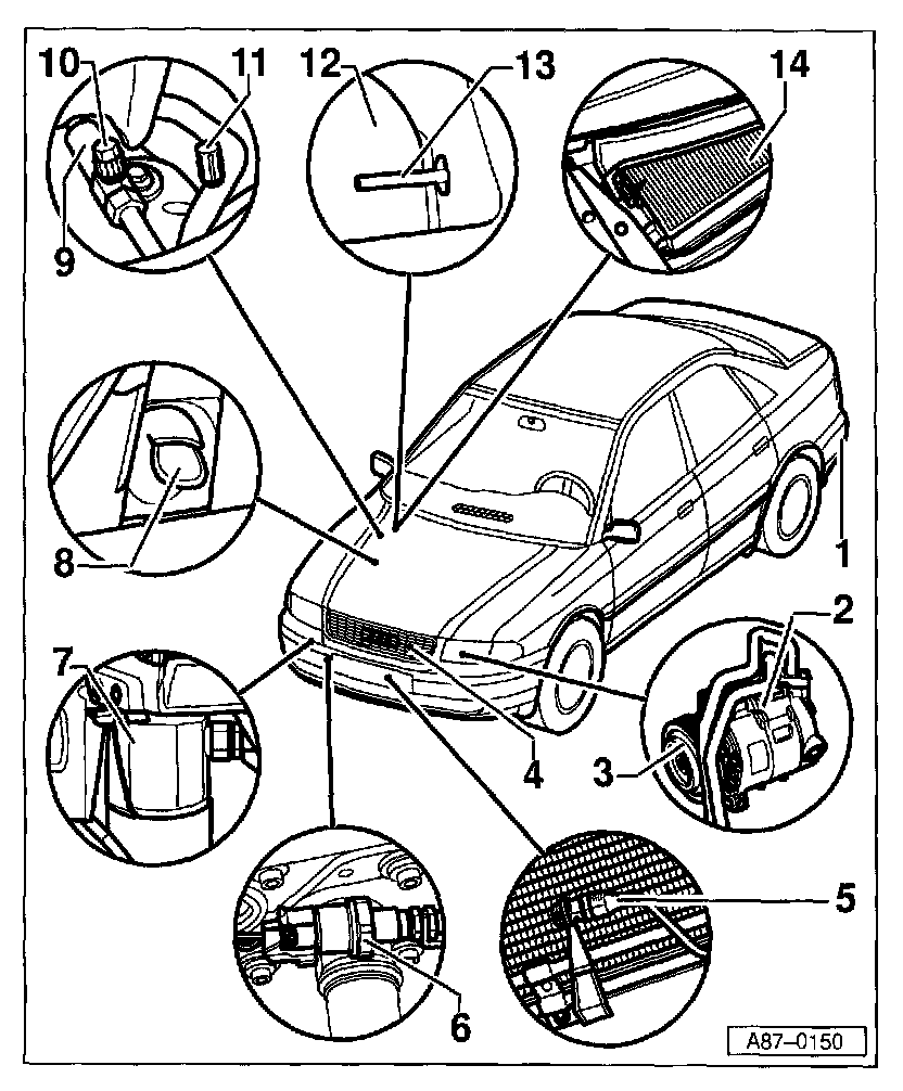 - Confirm proper coding of A/C control head -E87- (engine type dependant).