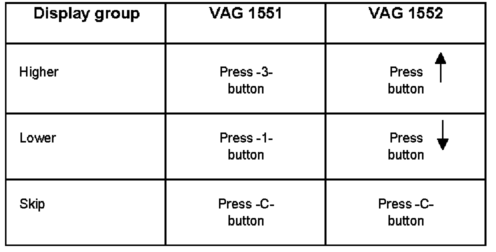 - Connect VAG 1551/VAG 1552 Scan Tool (ST) and press buttons -0- and -1- to insert "Engine Electronics" address word 01 (engine running at idle). Connecting VAG 1551/1552 Scan Tool