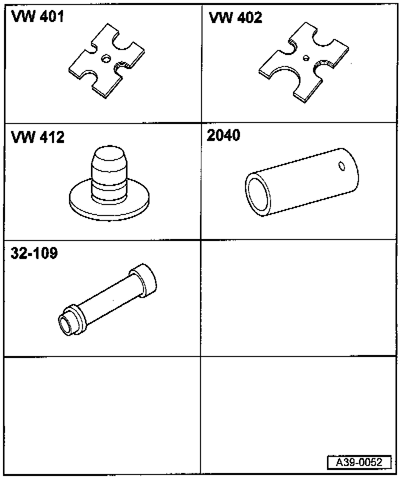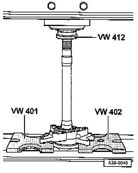 When pressing place mounting bracket onto the thrust plates VW 401 and VW 402.