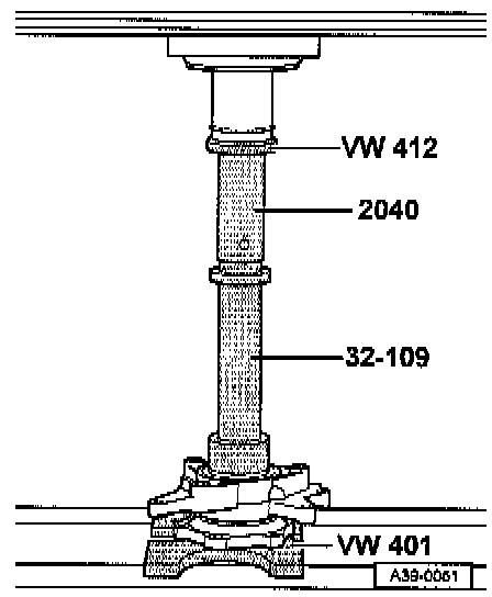 - Use thrust disc VW 412 to press flange shaft out of mounting bracket for left flange shaft.