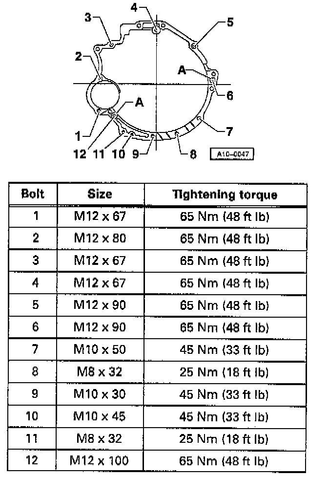 Tighten nuts and bolts as shown in the following tables: