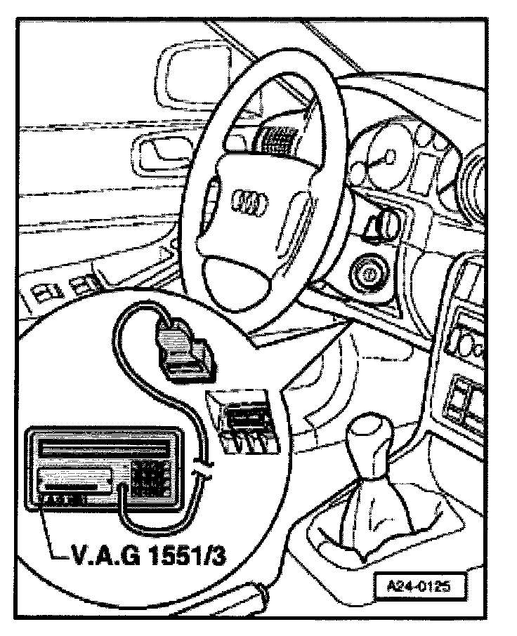 - Connect VAG 1551 Scan Tool (ST) with VAG 1551/3 adapter cable to DLC.