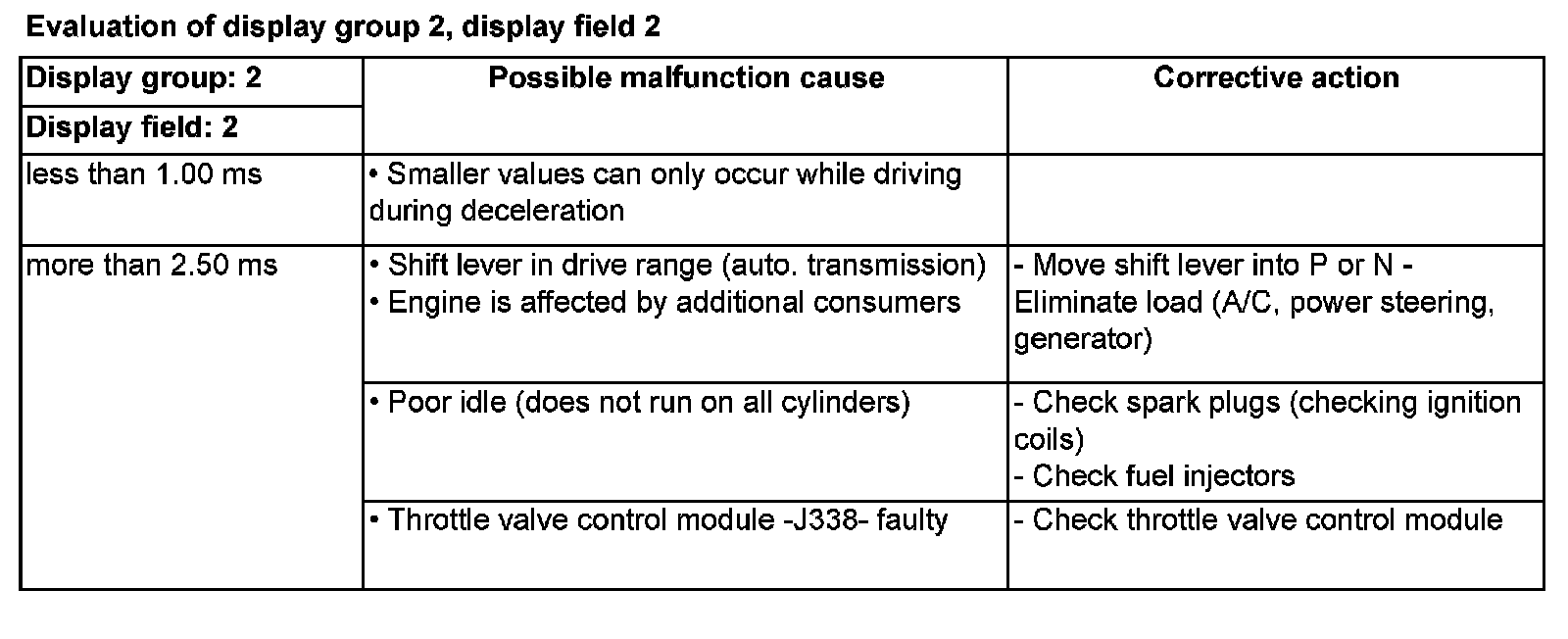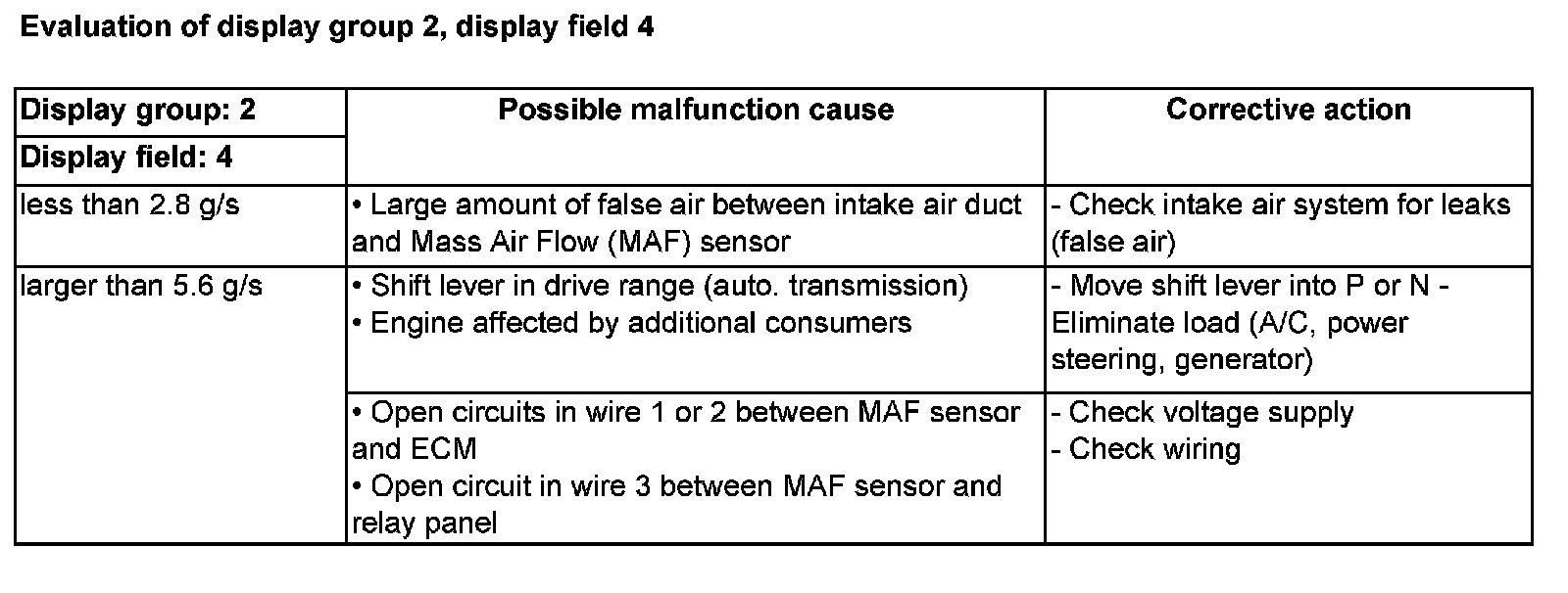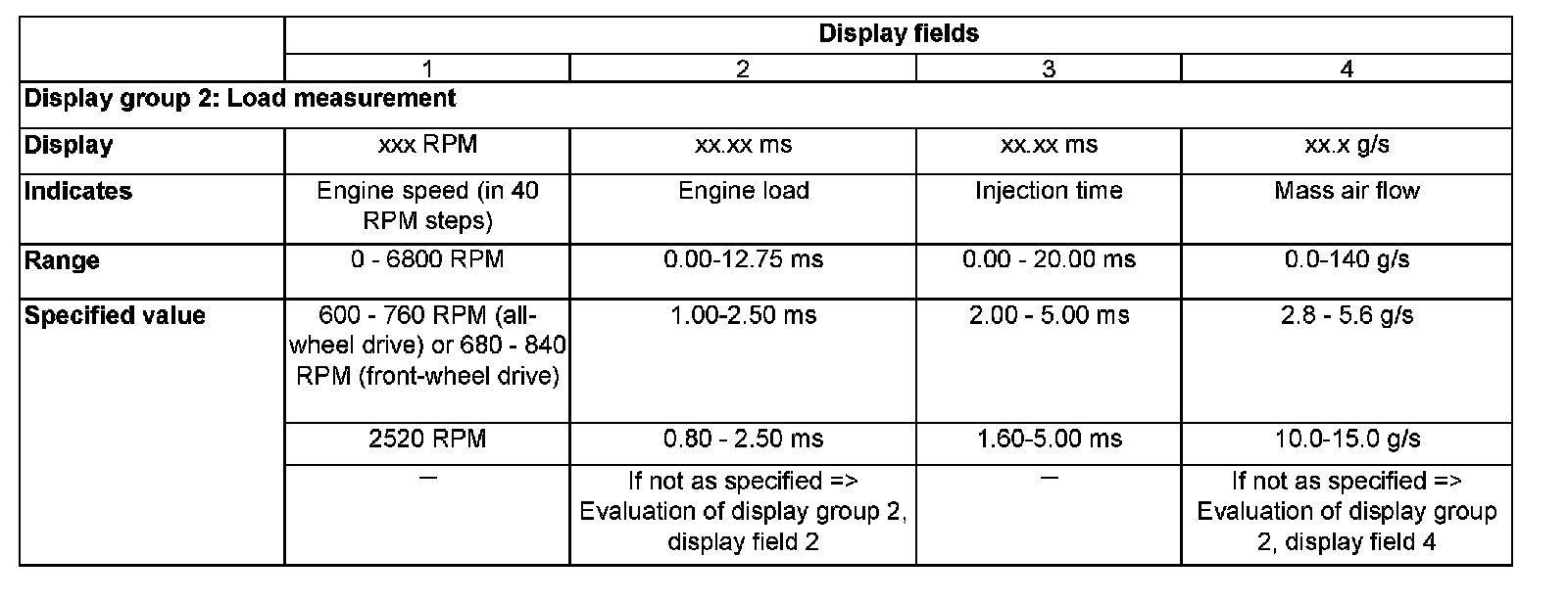 - Compare display with specified values for engine load (display fields 2 and 4):