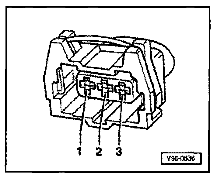 - Connect multimeter US 1119 (Fluke 83 or equivalent) between harness connector terminals 2 (Ground) and 3 (B+), using adapter cables from VW 1594 connector test kit.