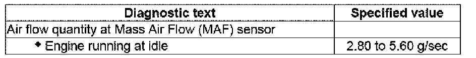 - Using the scan tool, Check the air flow quantity of the Mass Air Flow (MAF) Sensor G70 at idle: