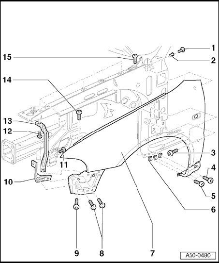 - Remove end plate - 3 - from fender - 4 -.