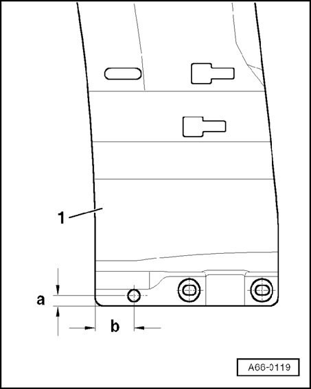 - Drill 7 mm diameter hole in fender. Dimension - a - = 22 mm and - b - = 8 mm.