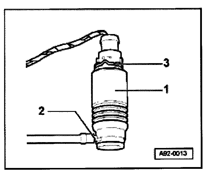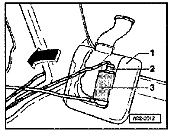 - Lift washer fluid reservoir -1- up out of retainer and lay it in trunk.